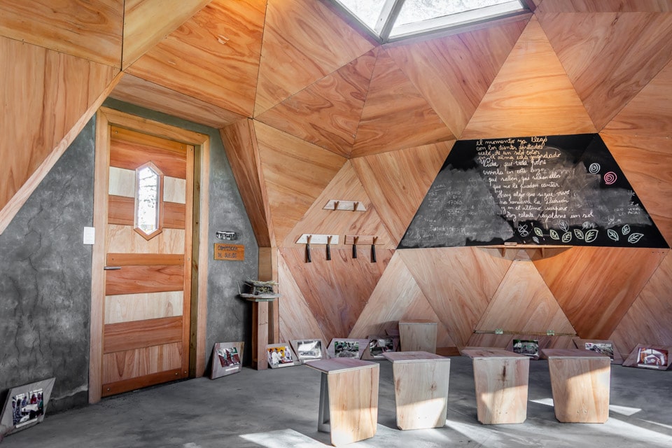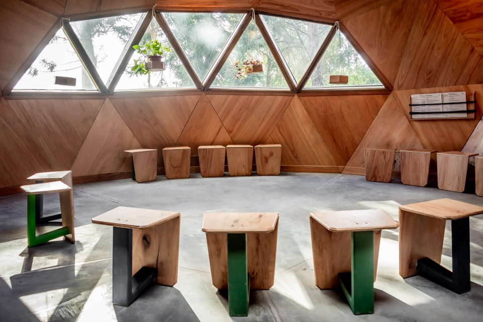 Un domo geodésico de 40 m2 que presenta principios de sustentabilidad relacionados a la gestión del agua, la energía, los materiales naturales y la eficiencia energética y la producción de alimentos.