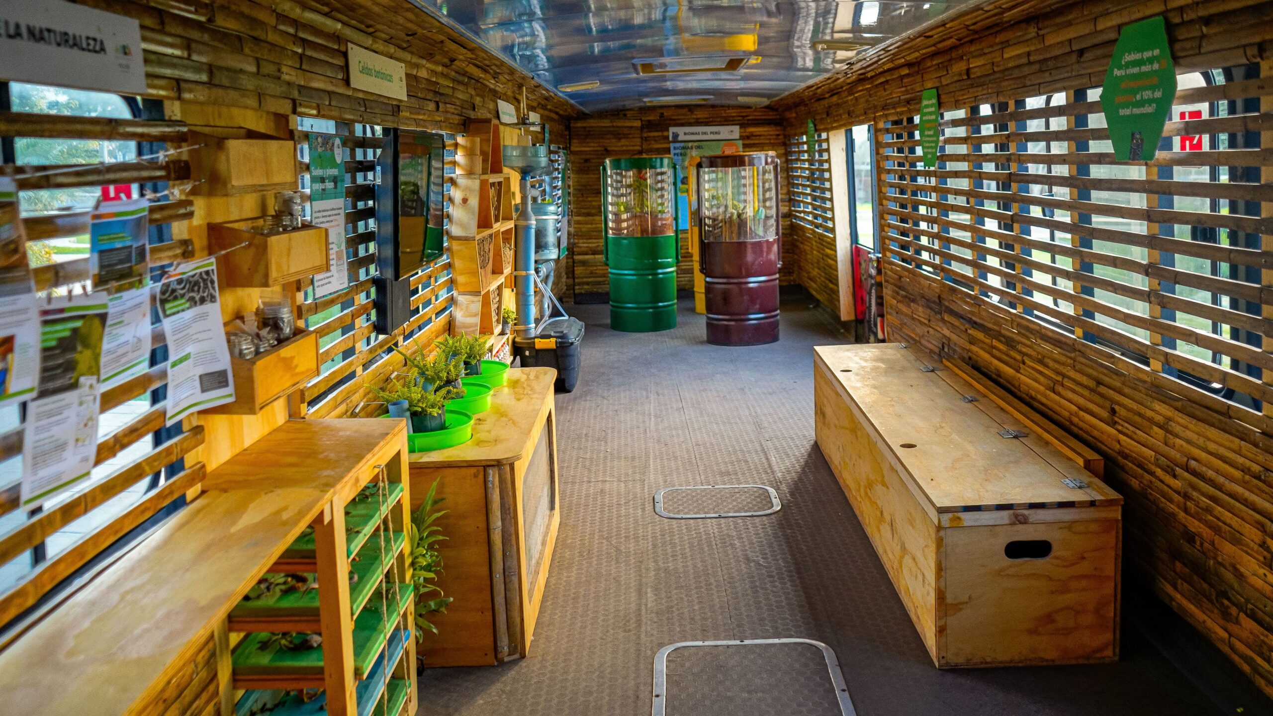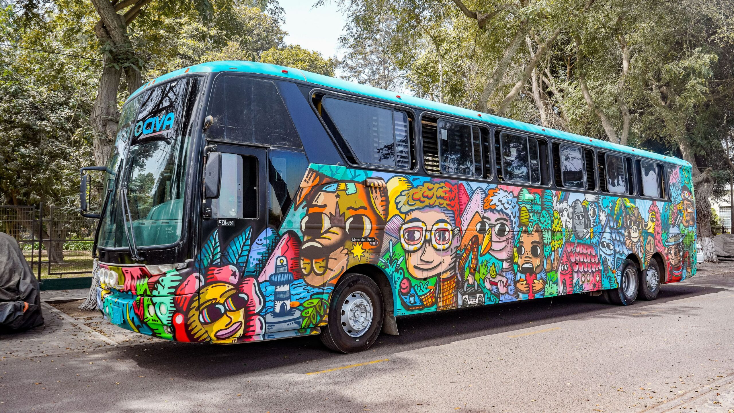 El exterior del Bus fue intervenido por el artista Cake quien se inspiró en la vasta flora y fauna peruana, plasmando sus valiosos recursos en una pieza de arte única e increíble.