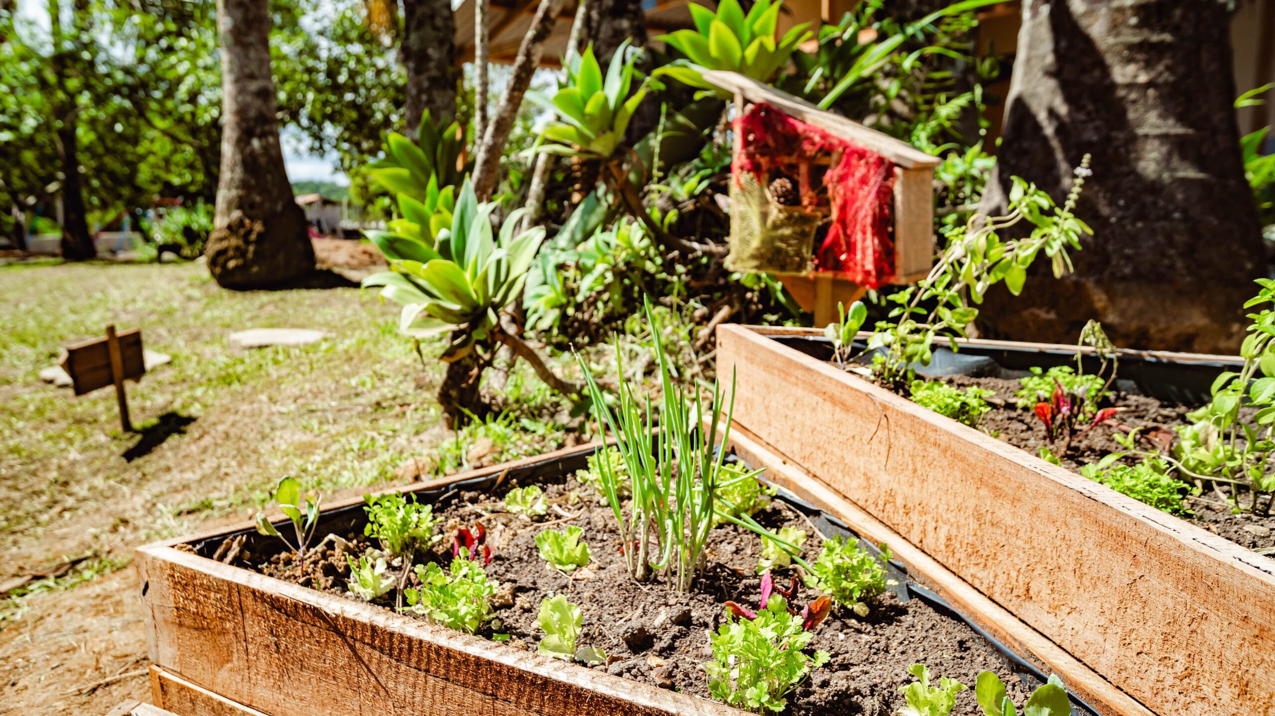 El huerto escolar fue ampliado junto con el diseño del paisaje y, en el futuro, se prevé la implementación de un sistema agroforestal con árboles frutales que proporcionarán frutas, hortalizas y plantas medicinales para la escuela. También se plantaron árboles nativos.